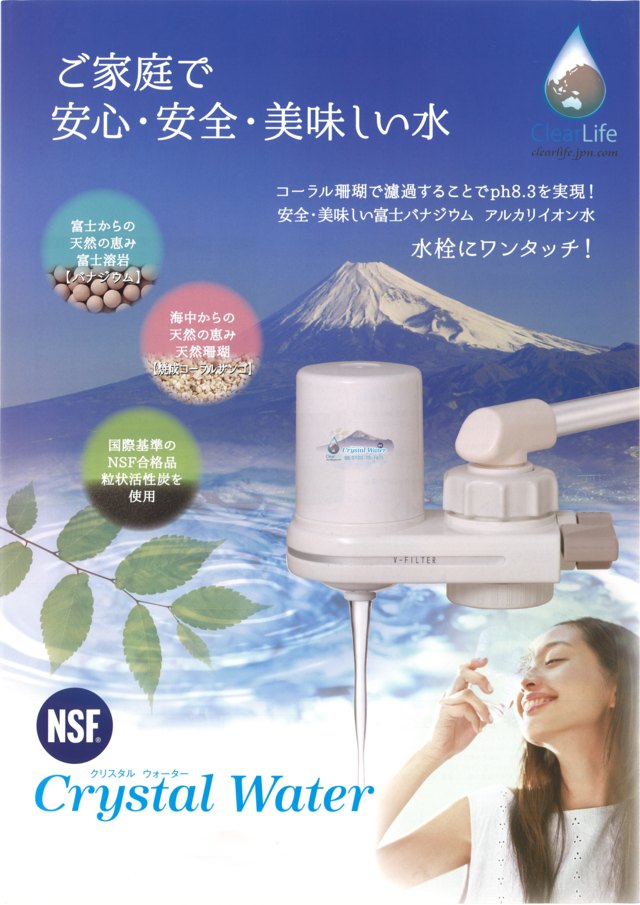 安全・安心な美味しい富士バナジウム アルカリイオン水が、家庭の蛇口をひねれば出て来ます。